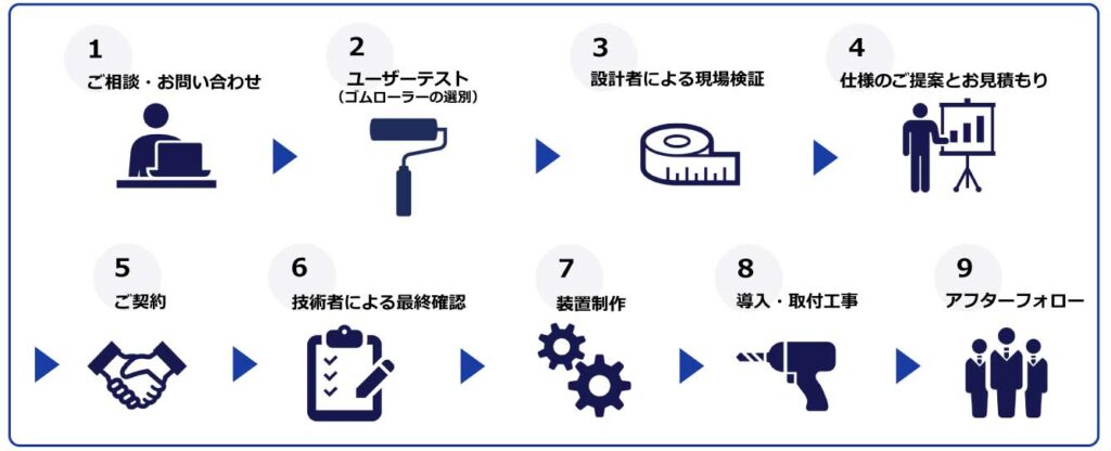 - 製造ラインの可動に支障のないよう、製造から取り付け、アフターメンテナンスも承ります